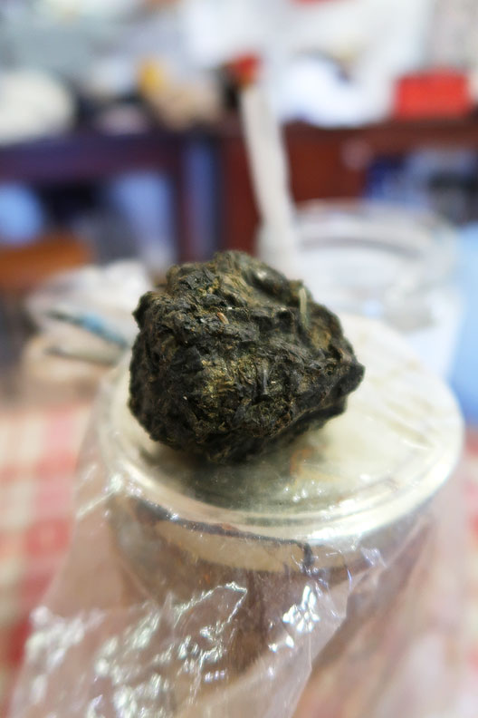 This fermented Indigo ball doesn't look so appetizing, but is the source of the most vibrant blues. |