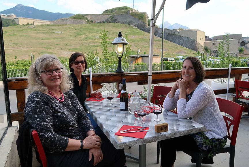 Arriving in Briançon: from left to right are Deb, Robin, and Pamela. |
