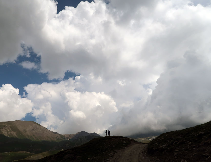 After a short picnic lunch, we drove and hiked an hour or two to a mountain hut. As we walked, storm clouds built over the nearby border with Italy. |