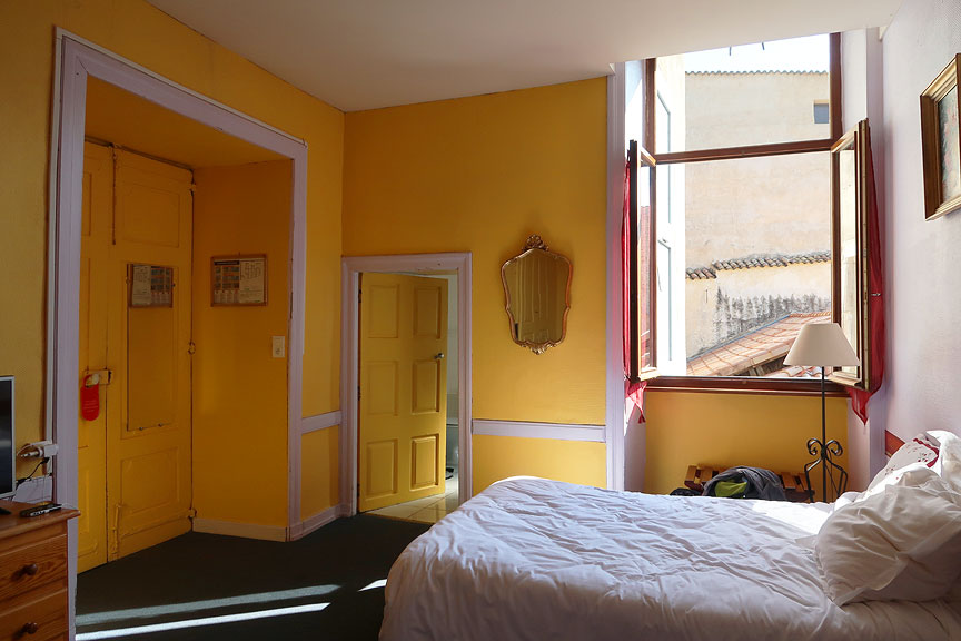Our sweet little room in the Hotel des Alpes in the morning. |