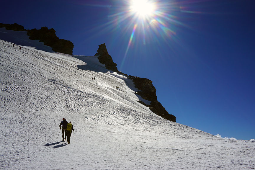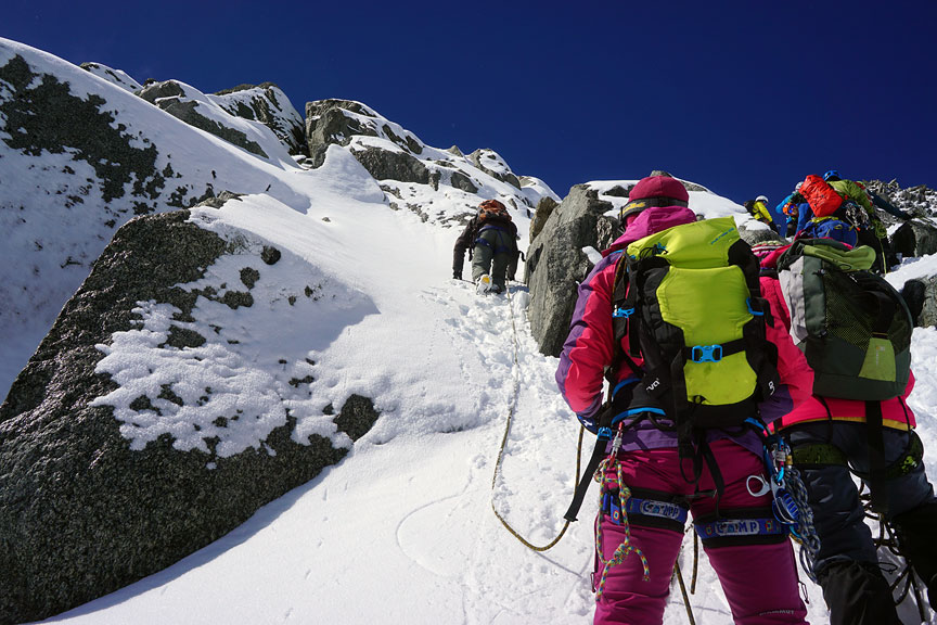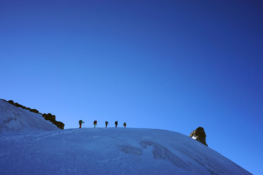 Climbing on the east ridge. |