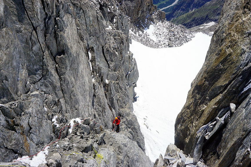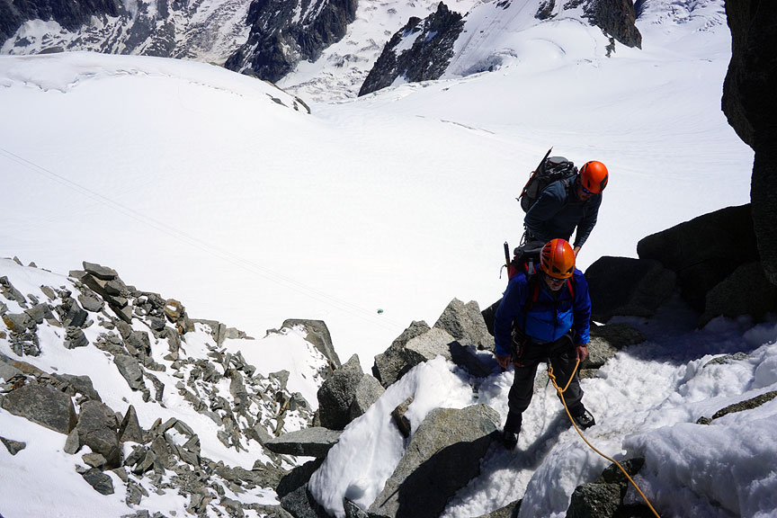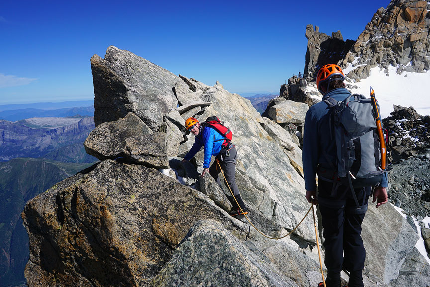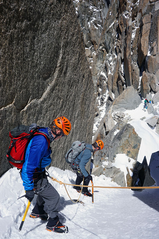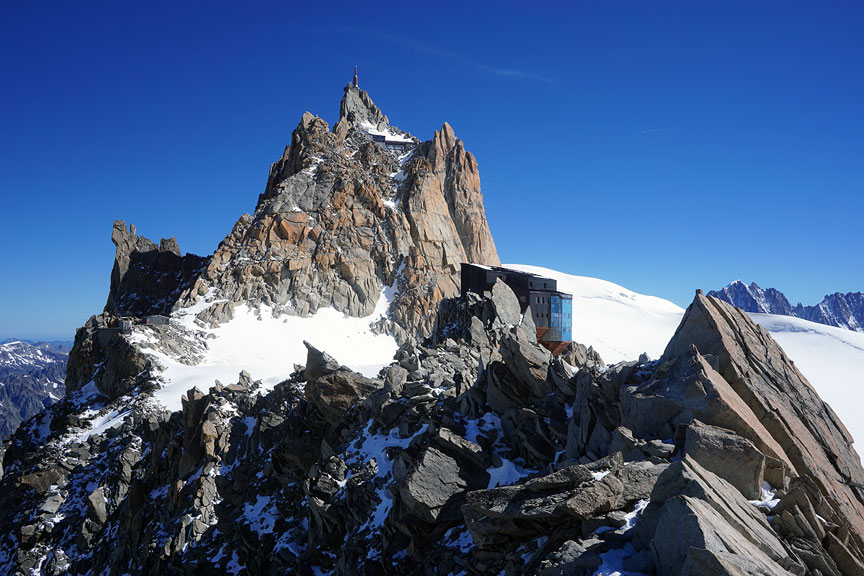 After a pass-through of the Cosmiques hut, we continue up the Cosmiques Arête. |