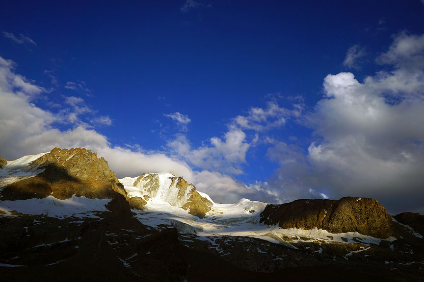 Looking up at the Gran Paradiso (summit in the cloud) from the hut. |