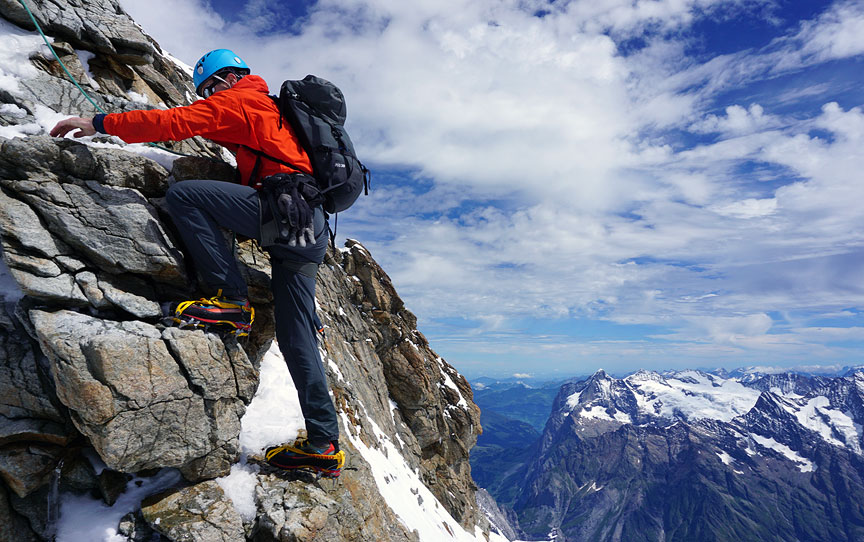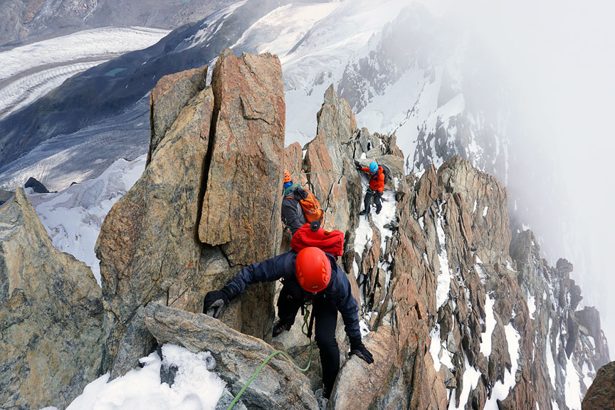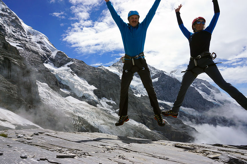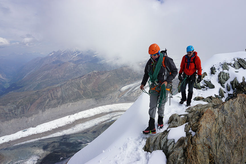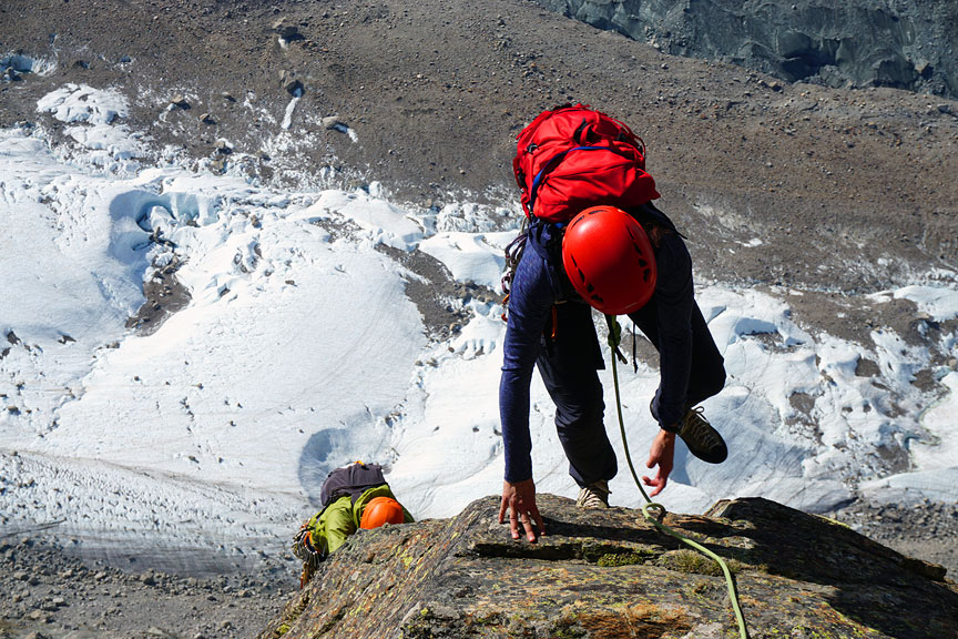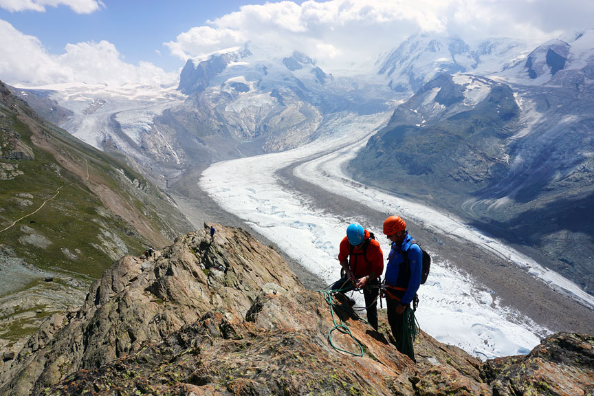 With one more day, and very high winds forecast for upper elevations, we opt for some fun rock climbing on the Riffelhorn. |