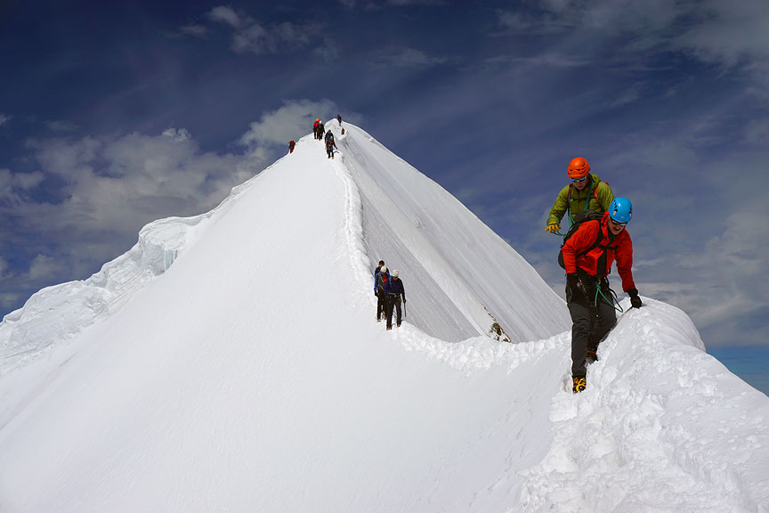 We are still on our way to the summit, but Mike and Jim have to reverse course to allow for descending oncoming parties to pass. |