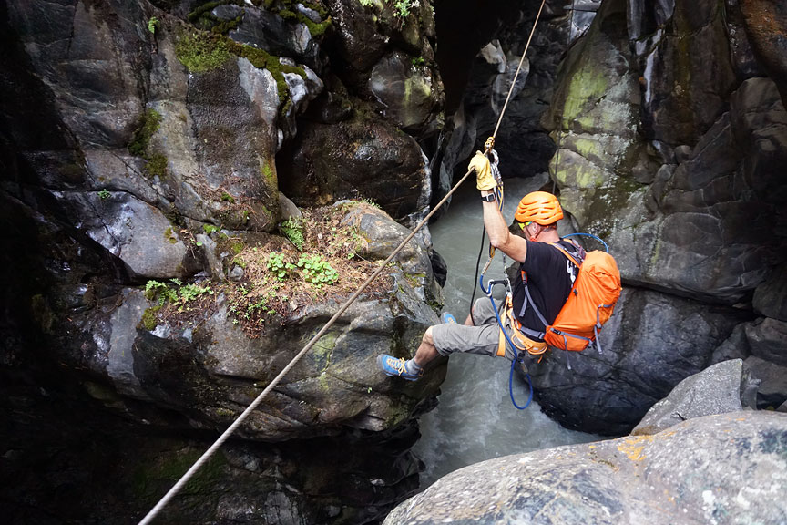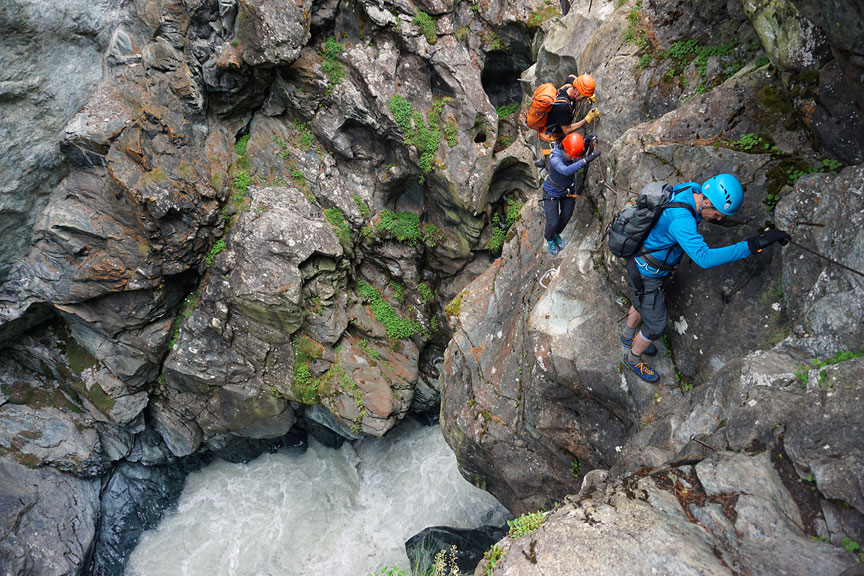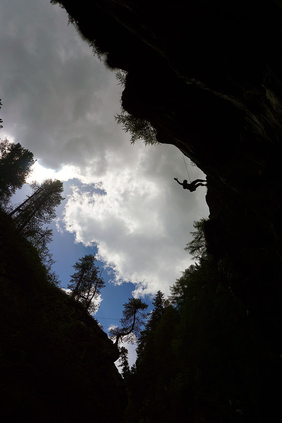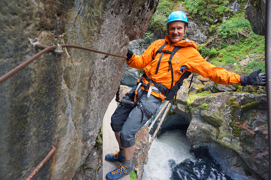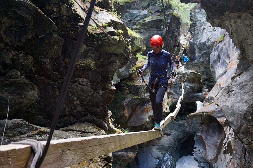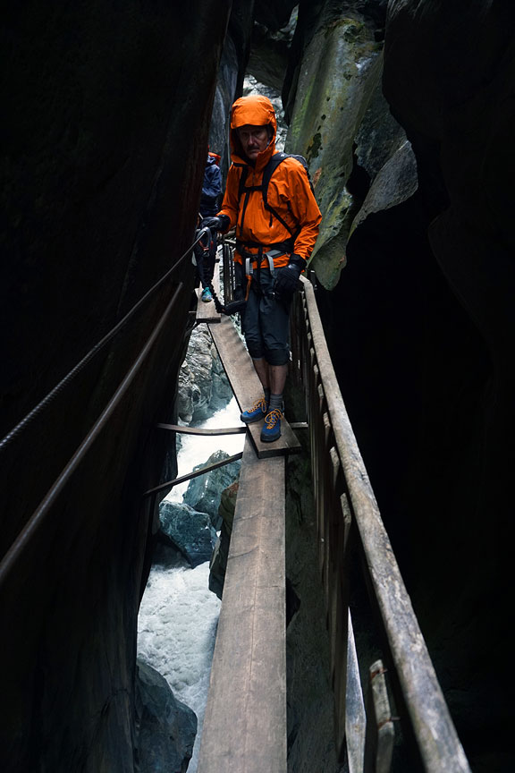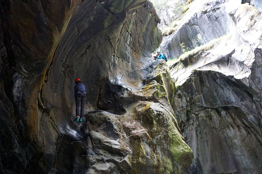 With continued unstable weather forecast for the Bernese Oberland, we decided to decamp for Zermatt, where the forecast was slightly better. After a drive and hotel check-in, we still had time to do the Gorner Gorge Adventure. |