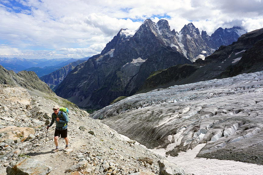 We had a long and tiring fist day, with a big drive from Chamonix and a lengthy, but fortunately easy, hike up to the Refuge des Écrins. The start was made somewhat more taxing for Grant due to a missed flight connection (bad weather at Dulles, again) and few hours of sleep the previous two nights. But he persevered! |