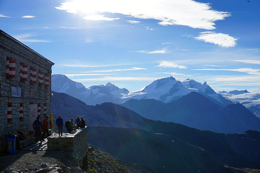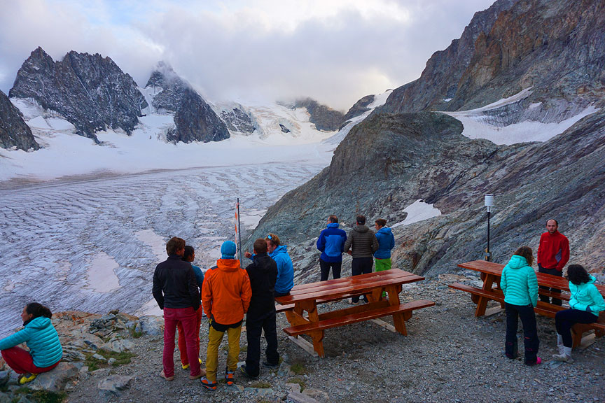 Breakfast at 4:00 am. To get to the Obergabelhorn, we have to climb up and over the Wellenkuppe. |