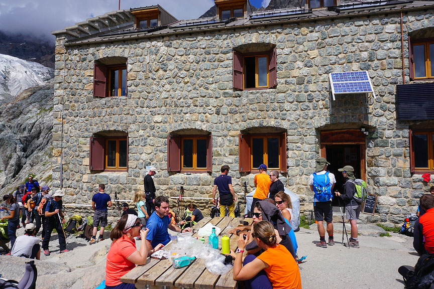 Arriving at the busy, but welcoming Refuge des Écrins. |