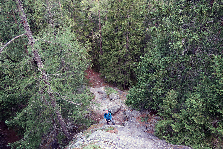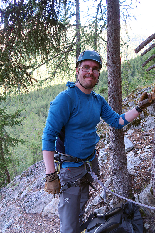 Andreas at the start of the belayed climbing. |