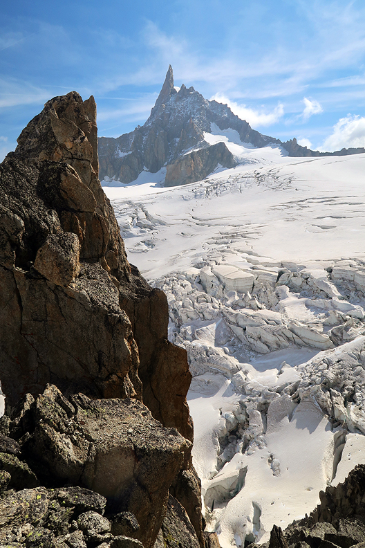 A view of the neaby Dent du géant and the busted up glacier of the same name. |