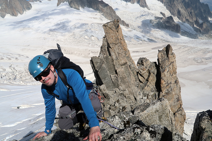 Our objective is the upper part of the foreground ridge in this photo, the "Petit Flambeau" North Ridge. Awe inspiring setting! |