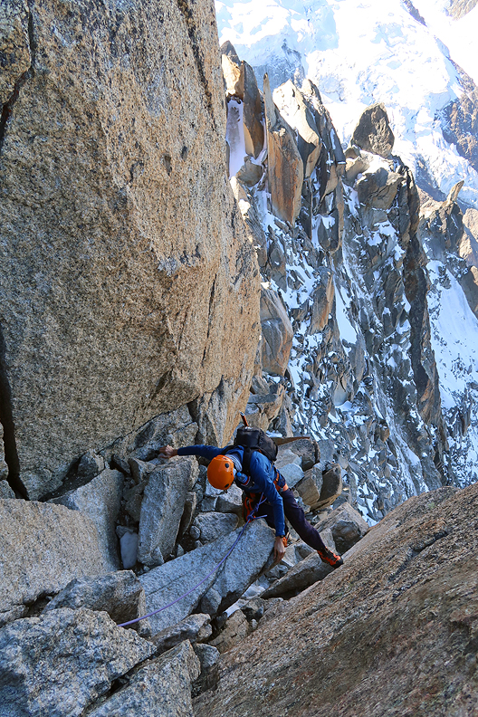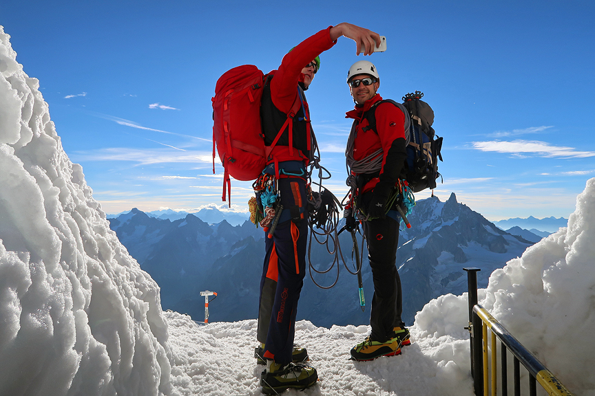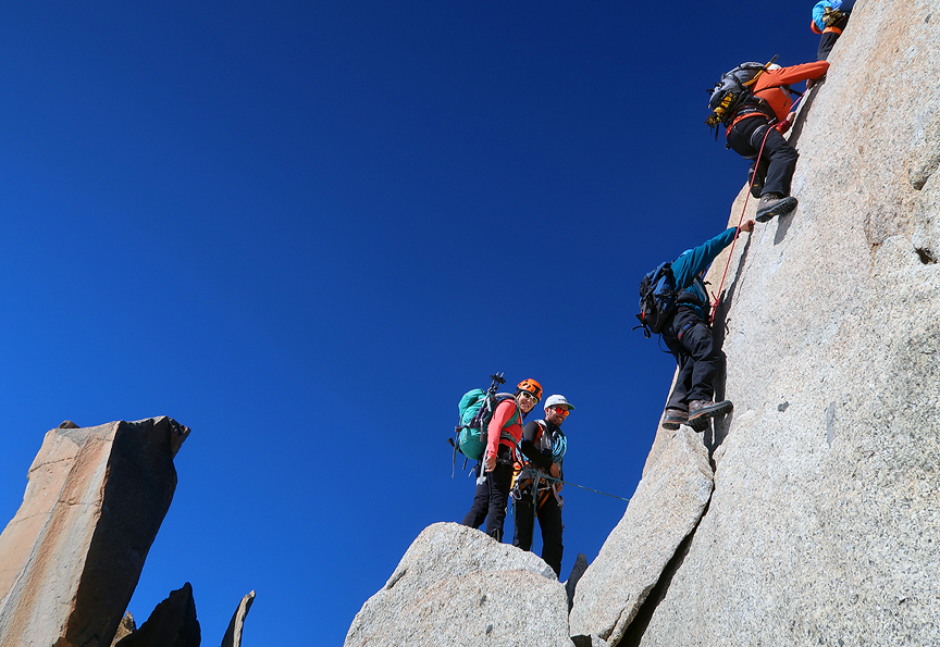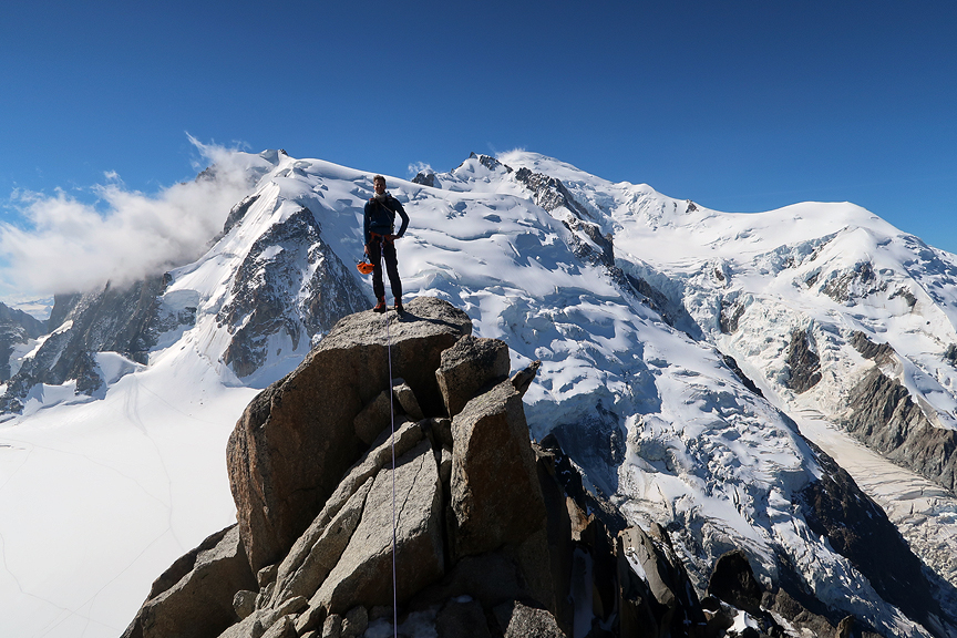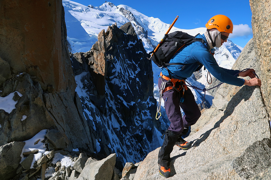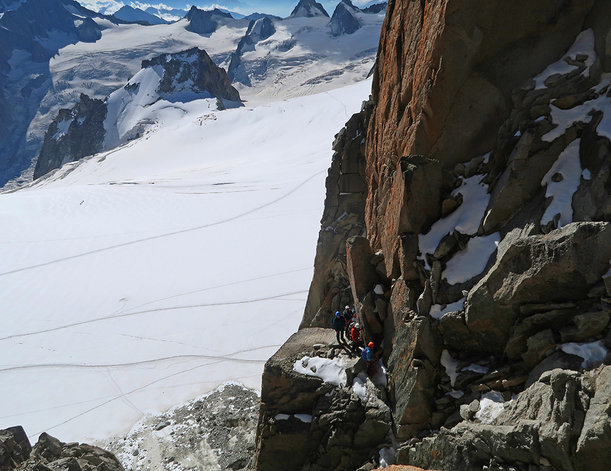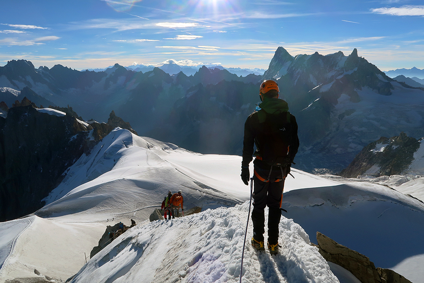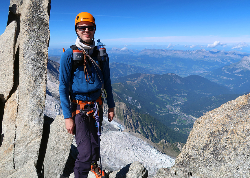 Mike Duker managed to catch Kathy for a day before her departure for Wales. The climbed the ever classic Cosmiques Arête on a perfect day. |