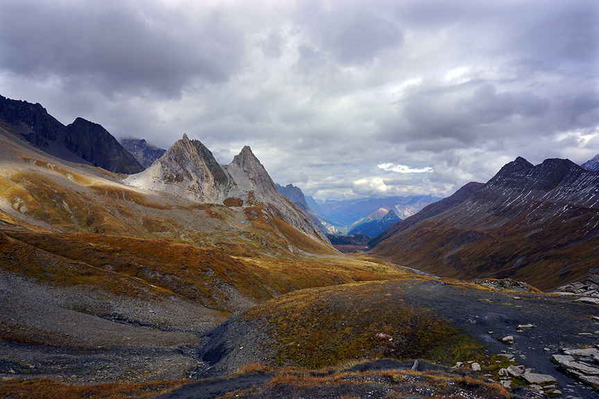 We eventually turn our backs to it and climb over the Grand Col Ferret. |