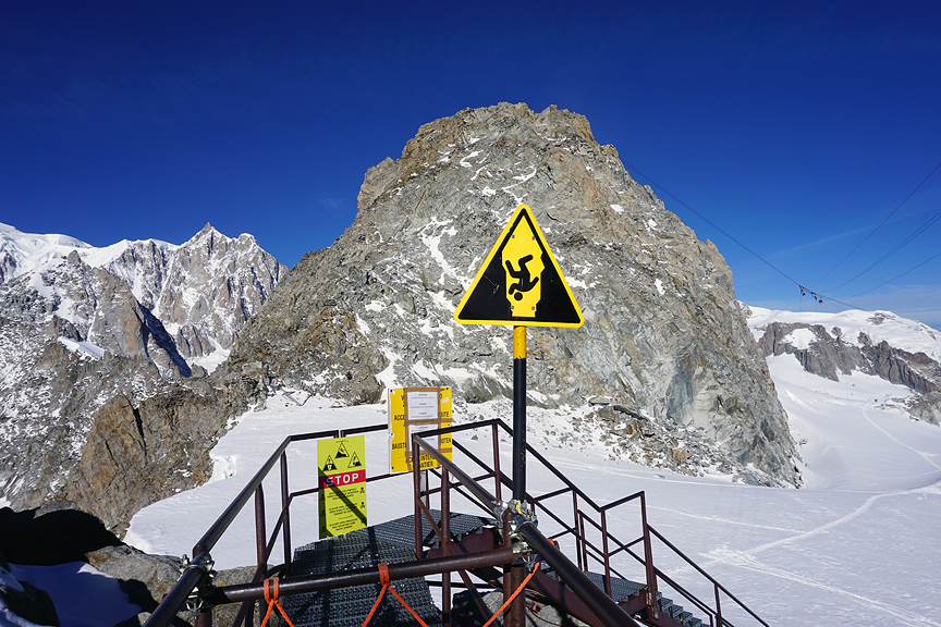 On our last day, as all other lifts were closed and some of us had already explored the trails of the Aiguilles Rouges, we took in the top of the world! i.e. the Aiguille du Midi cable car and top station. |