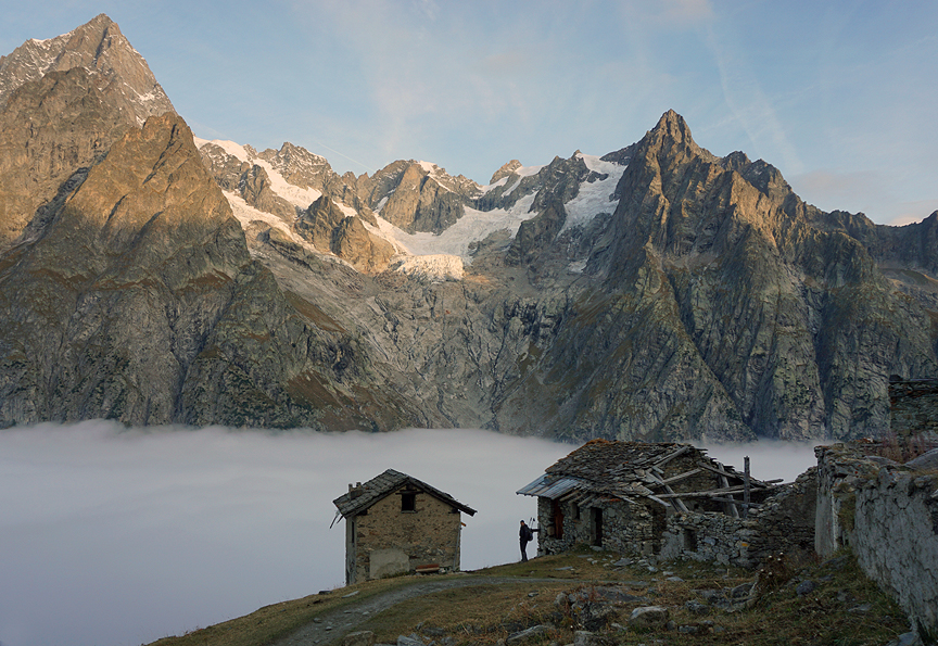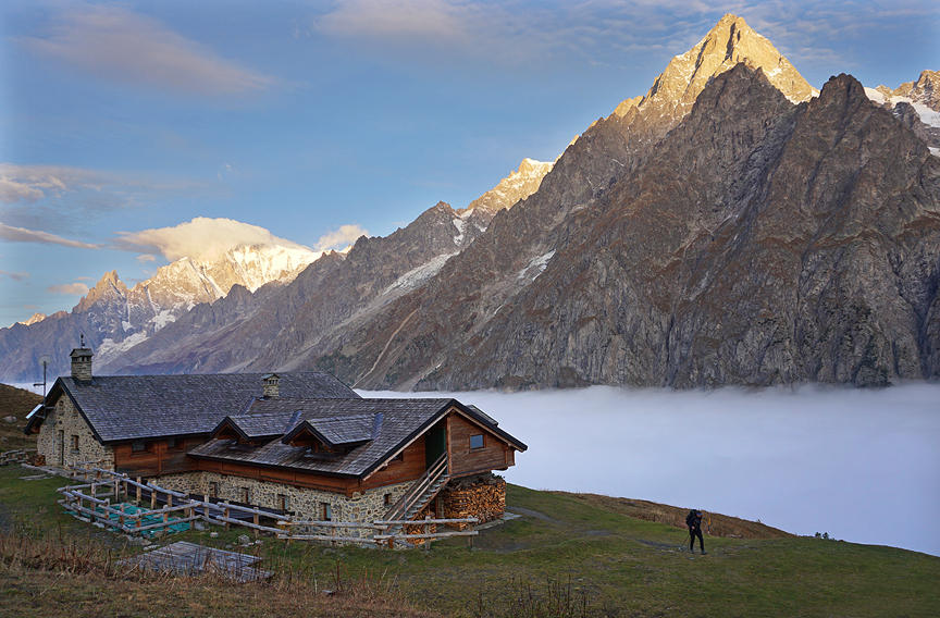 A few hours later, well ensconced in the beautifully situated Bonatti hut, we dash out to catch the sunset before dinner. |