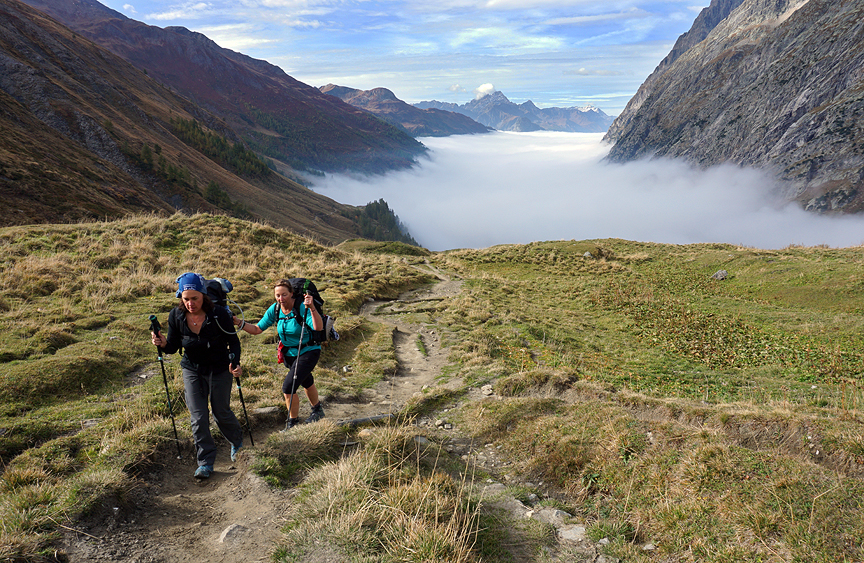 The next morning, we start out above a sea of valley fog. |