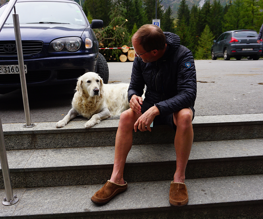A much needed and well deserved coffee break on the outskirts of Champex Lac. |