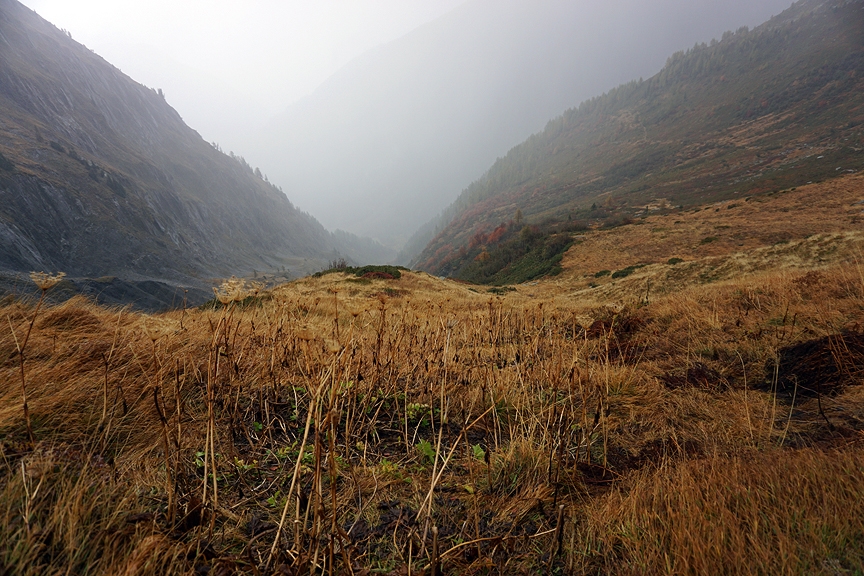 We descend endless steep meadows back toward the valley and the Torrent des Glaciers. |