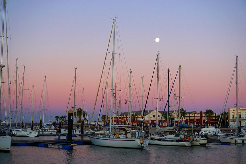 We arrived in Ayamonte with the setting sun, were met by our hosts and in no time at all, installed onboard. After settling into our new home, we went ashore for a glass of wine with Debbie and Shane. |