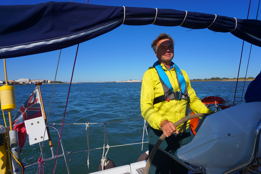 The winds and sea were much more interesting on our second day of sailing. Great fun with El Rubicon zipping along though the swell. We enjoyed it immensely though I think it was not ideal from an instructional point of view. |