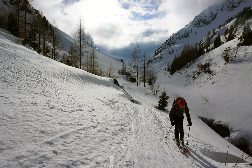 And into the couloir that leads to the Col. Excellent conditions. |