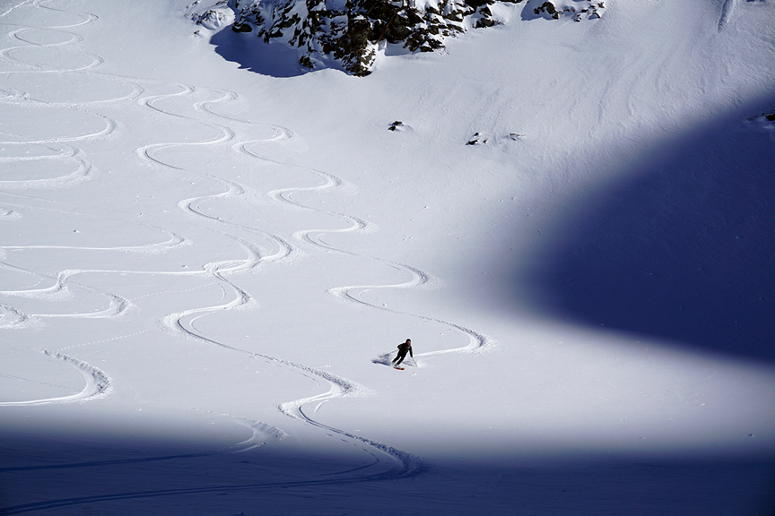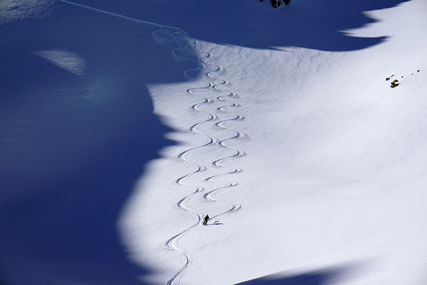 We found some great snow on the descent. |