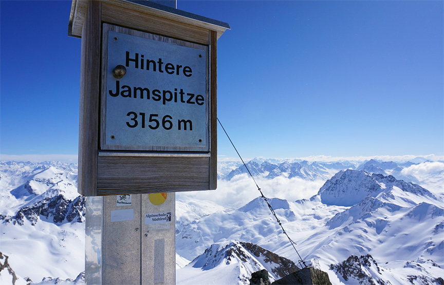 Despite the sunshine and clement weather, the temperatures began to drop noticably as we neared the summit of the Gamsspitze. |