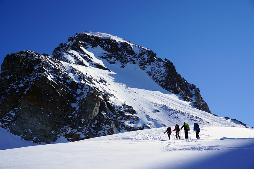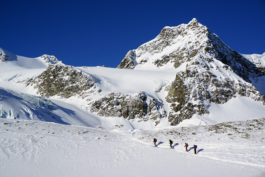 Heading toward the Wiesbadener hut, the absence of wind made the temperatures seem quite moderate. |