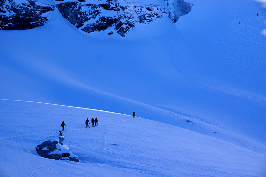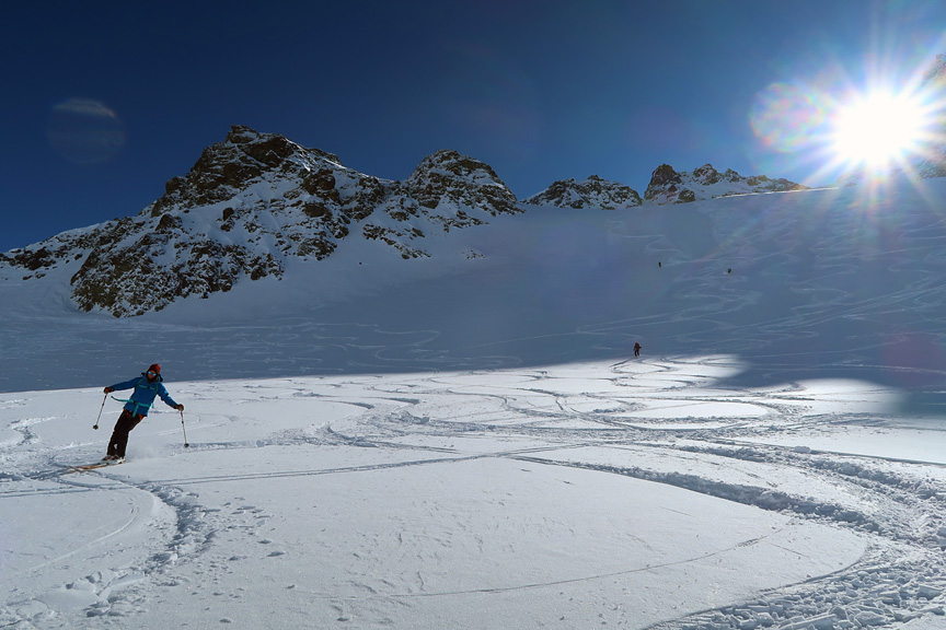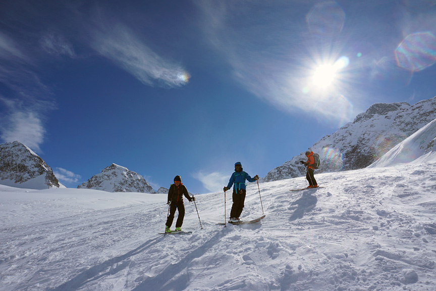 Day three, we headed up toward the Hintere Jamspitze, in bright sunshine but very cold temperatures. |