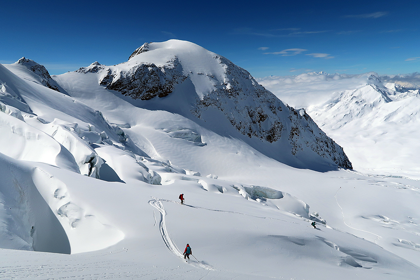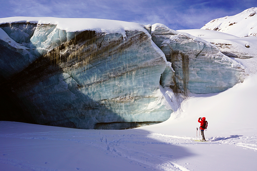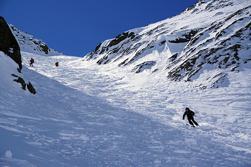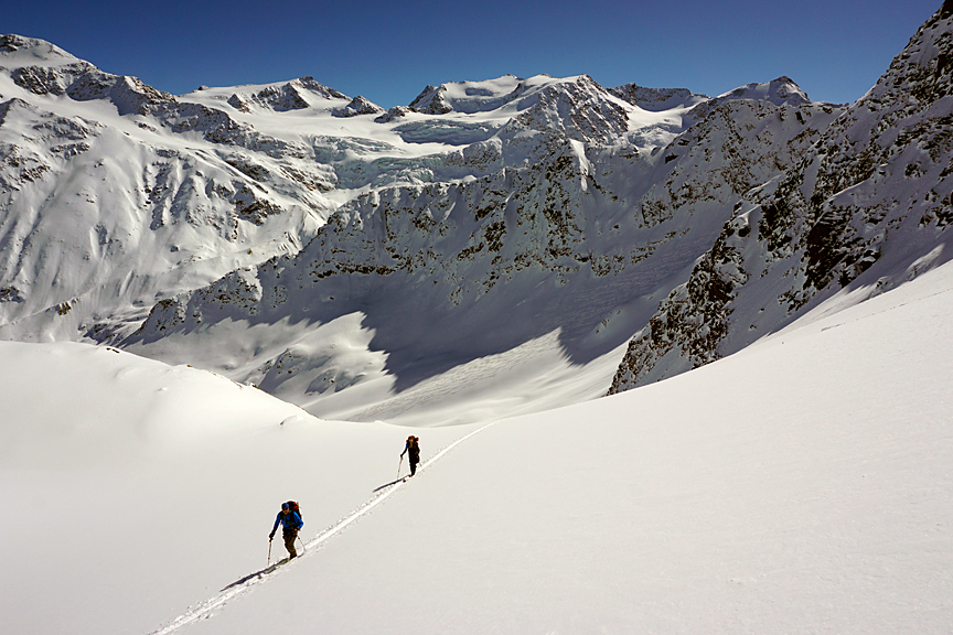 We descended lovely sheltered snow onto the Cedec glacier. |