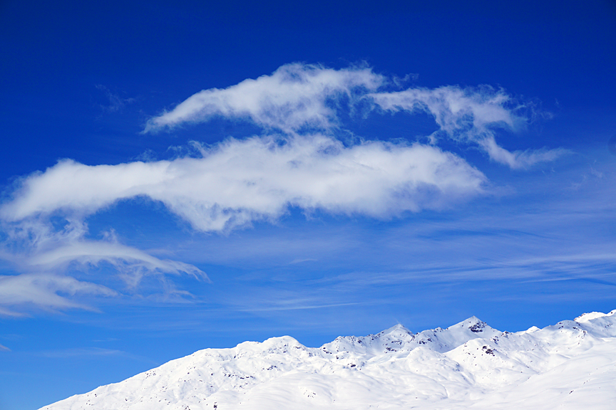 Today we head up toward San Mateo. The tracks from the previous day show us the quality of the snow, and there's still some room to fit in some turns of our own. |