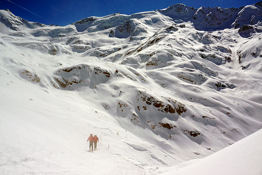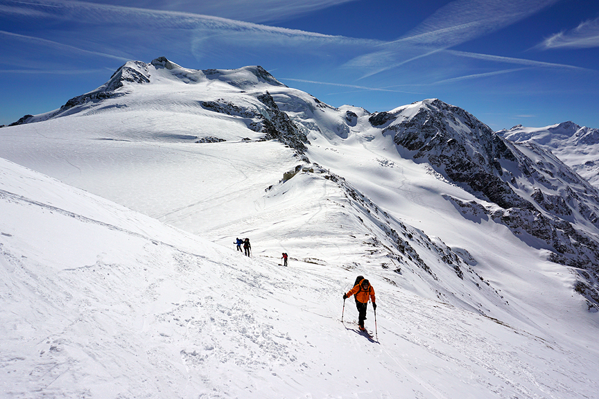 Booting it up the last few yards to the Passo del Cevedale. |