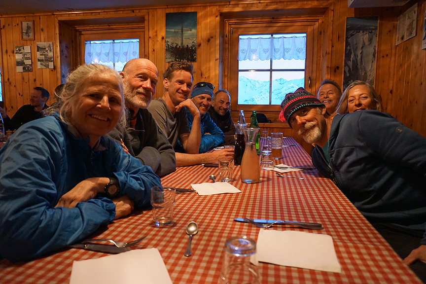 Our second Ortler ski tour this year was in the company of a great crew of friends, if not all of them before the trip, definitely all afterwards! A highly medical team as it happened; 6 doc types and one who could play one on T.V. if she wanted; we felt ready for any medical emergency! More importantly, everyone was fun, kind, smart, and good looking. Oh, and darn good skiers too. |