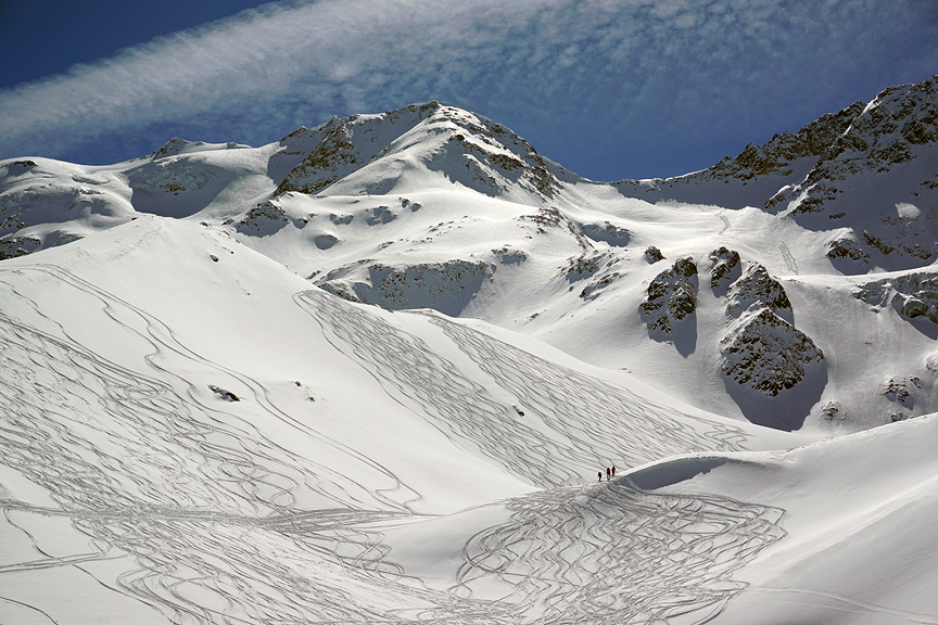 Heavily wind-featured slopes on Cevedale. |