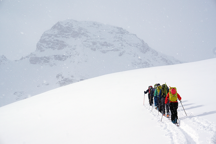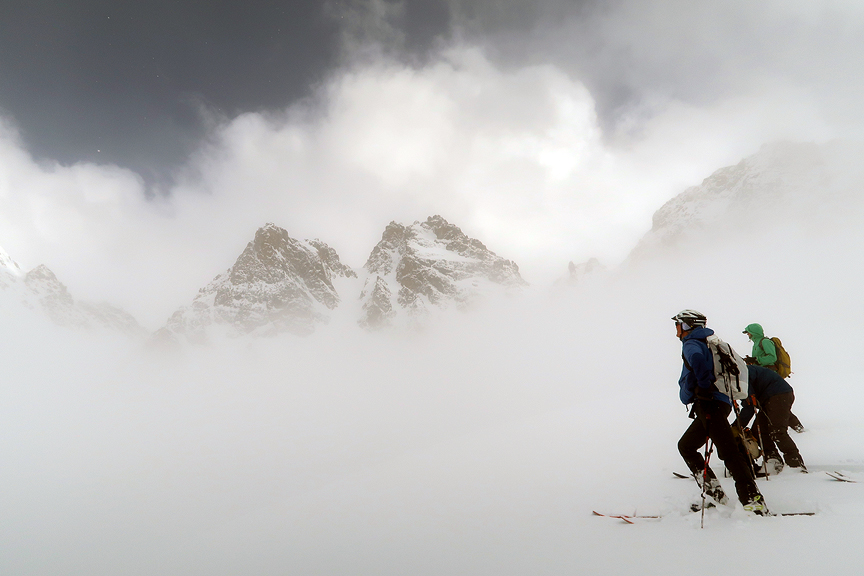 Day five was pretty sad weather with thick fog, warm temperatures and steady snowfall, but we did manage a half day sortie, to the Russkopf. |