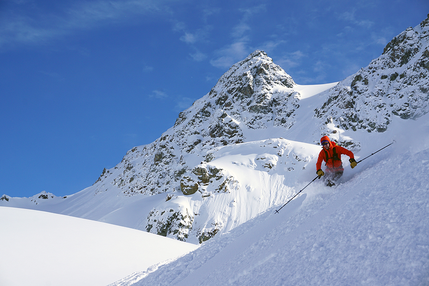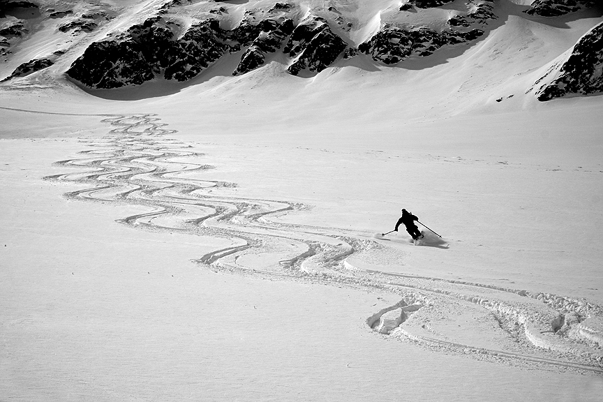 A beautiful pitch of perfect snow. CD finds his own line. |