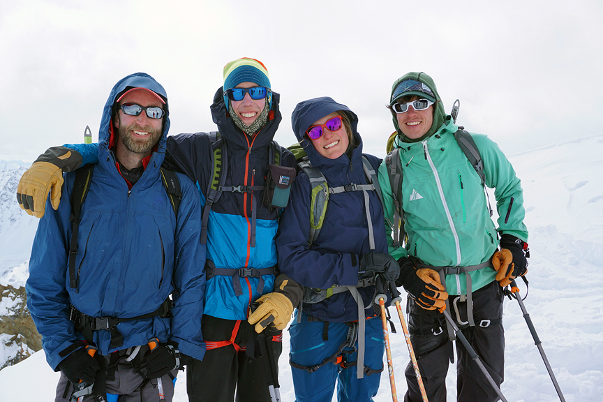 And time for another lap. This time we did get to a top, the Gemspitze. C.D., Laura, Phil and Josh on the summit ridge. |