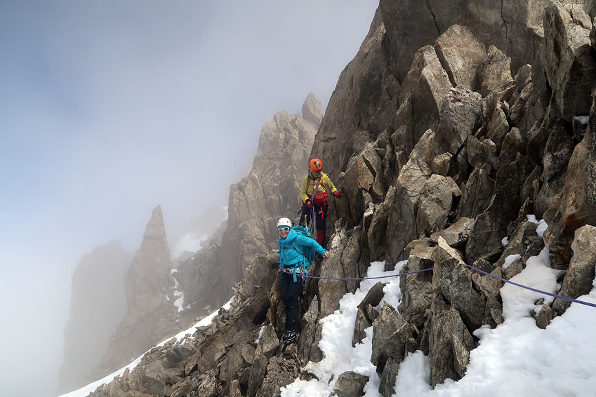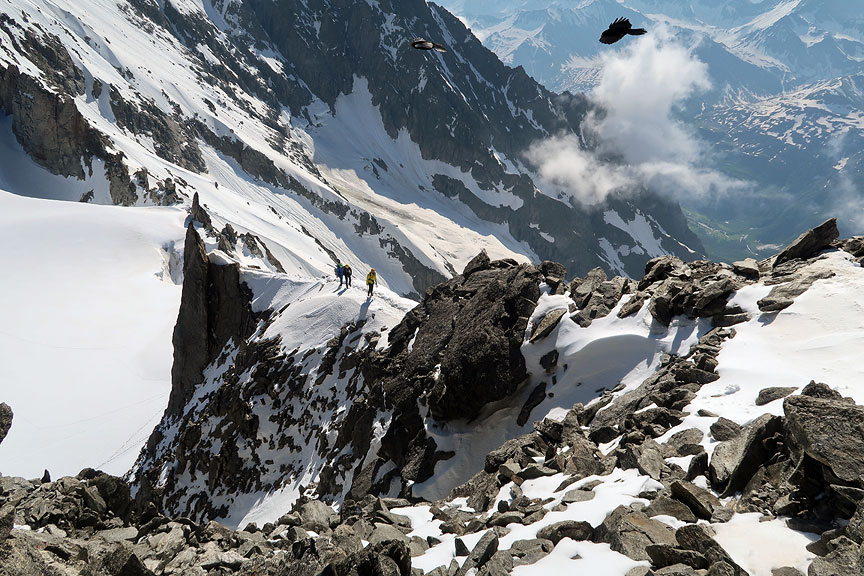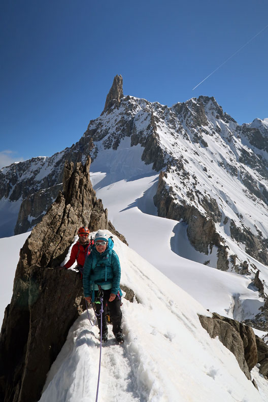 The next day we tackled the Aiguille Marbrées. Here we are on a narrow ridge with the Dent du Géant looming in the background. |