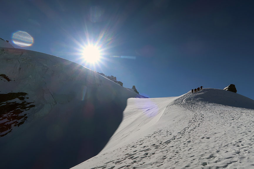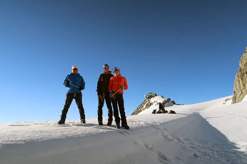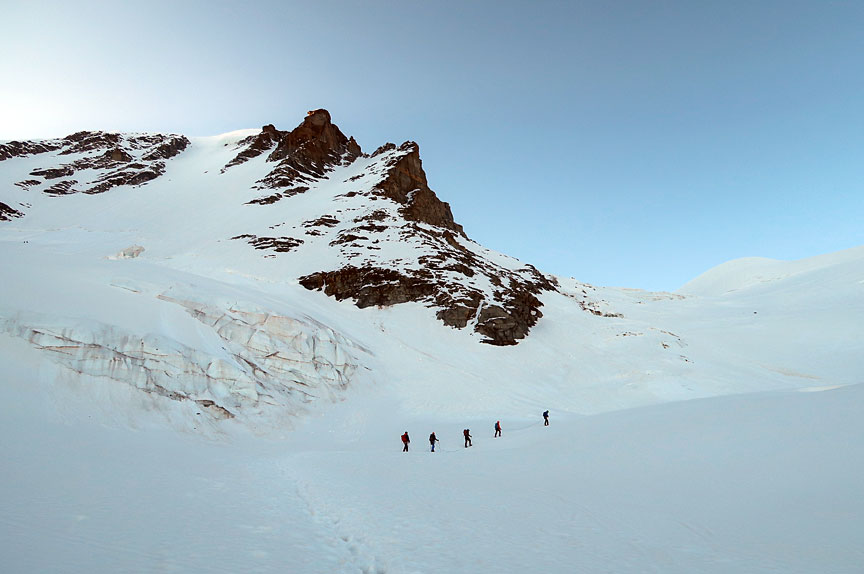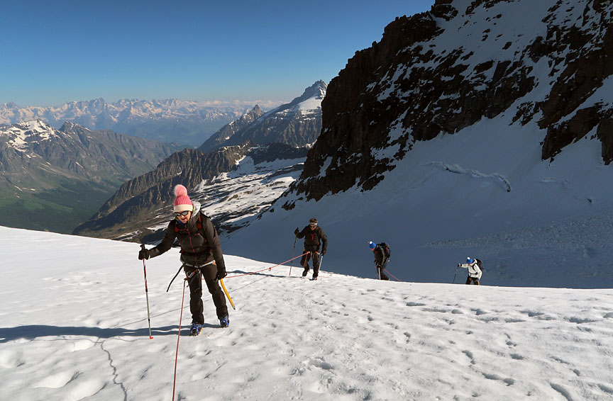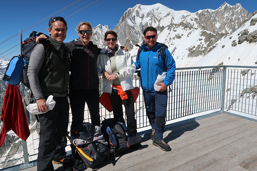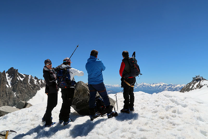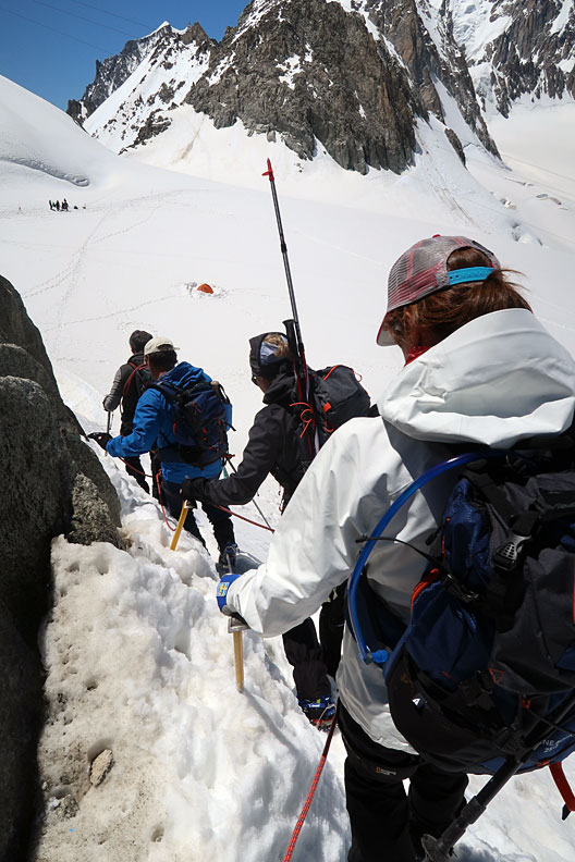 ... and it's time for the long trek back to the cars, and to a hot shower and good meal in Chamonix. Thanks to Rupert, Olivia, Miranda and Matthew for your efforts, good humor, courage and perseverance! It was great climbing with you all! |