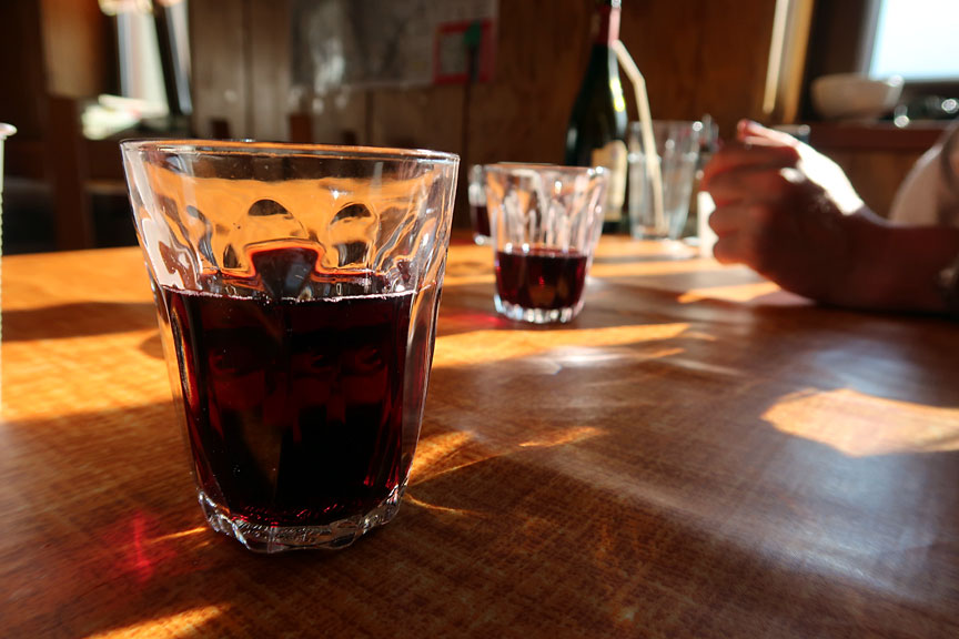 A nice sunny evening for a friendly game of cards and an apéritif in the hut. |