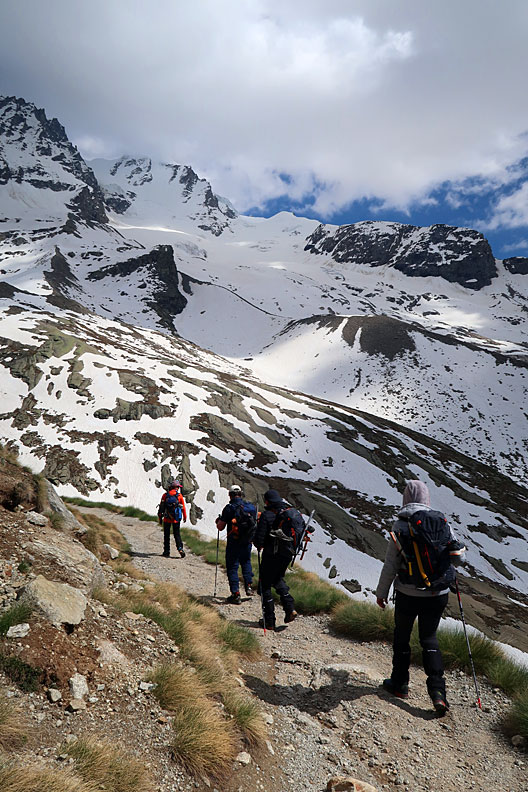 The party (in all the best senses of the word) on our first morning, at the Torino hut. From left to right: Rupert, Olivia, Miranda, and Matthew. |