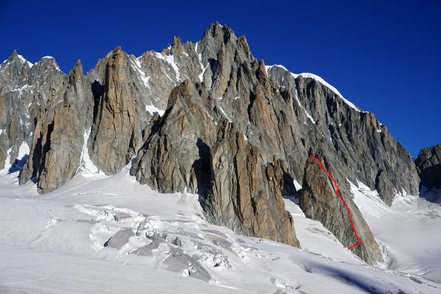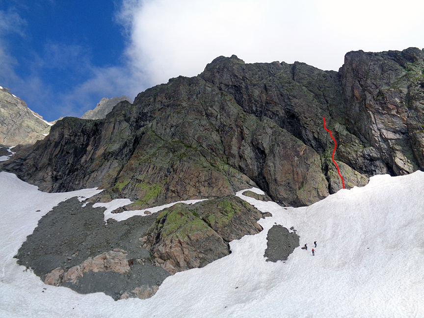 We started with an Aiguilles Rouges classic, Gaspard Premier on Pointe Gaspard. Gini at the base. |