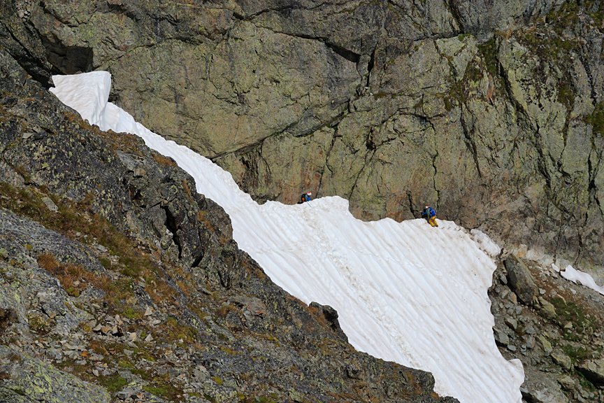 Looking over at another party on the descent - made much more interesting by the tremendous amount of remaining winter snow. |