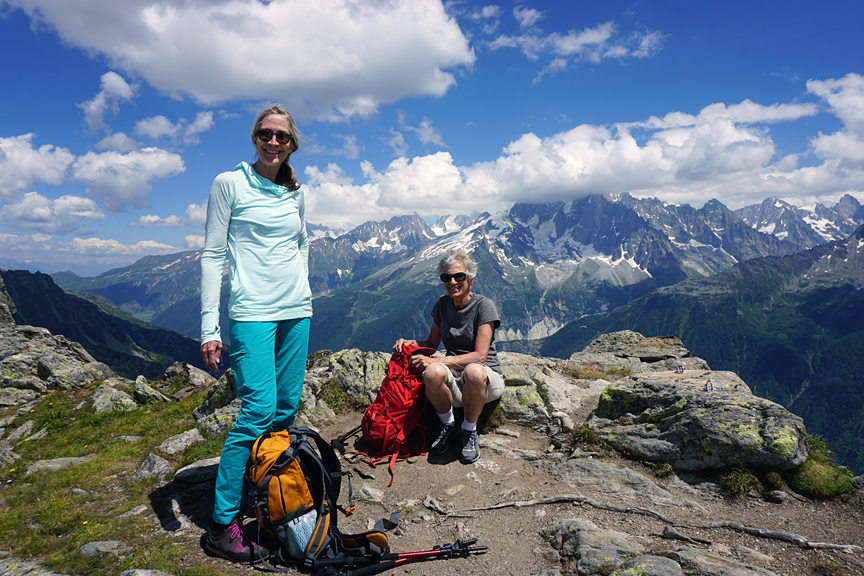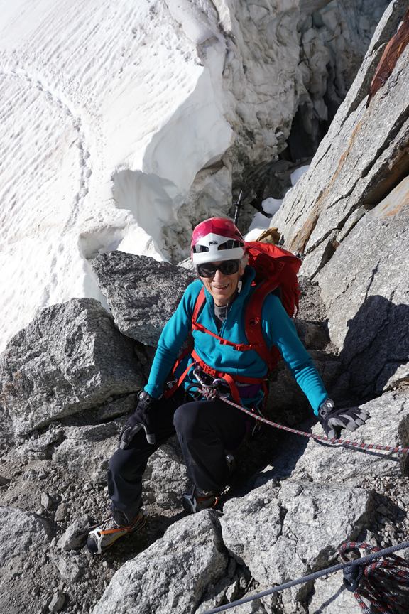 And on our last day, we were back up in the Aiguille Rouges. Gini and Mark were joined by Gini's friend Mary Beth. Our objective for the day (aside from simply enjoying the magnificent views) was Somone, a route Gini had enjoyed before. |
