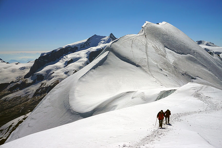 Traversing between the Central and West summits of the Breithorn. |