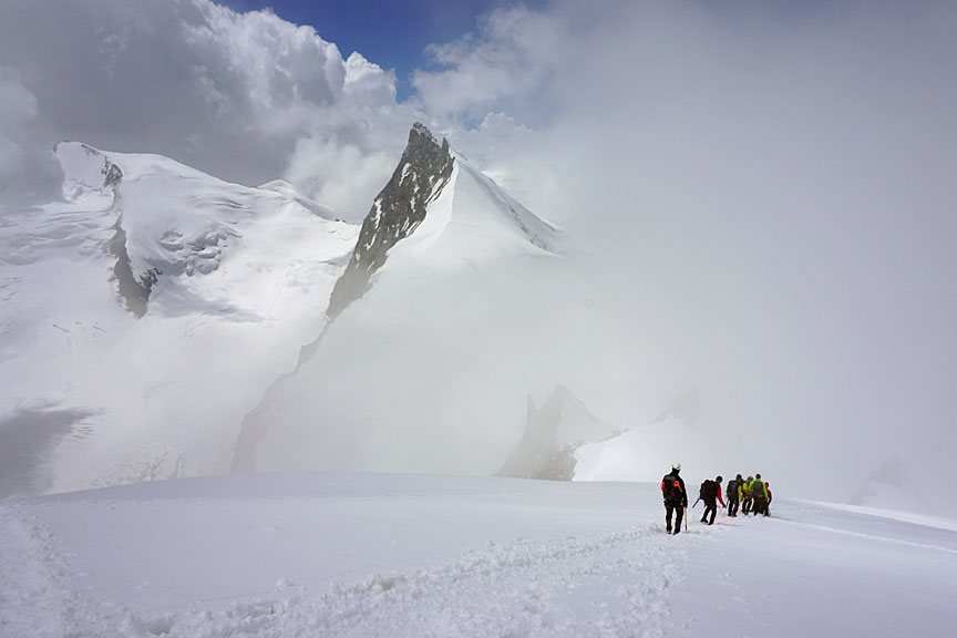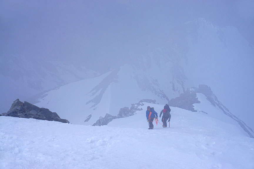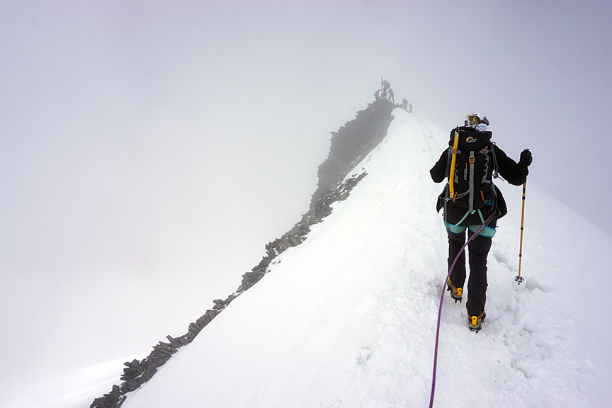 We were in and out of cloud as we approach the summit of Castor. |