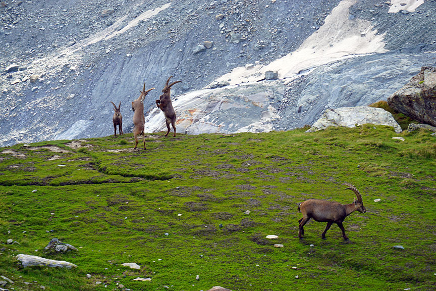 Ibex playing on the hike up to the Mezzalama hut. |