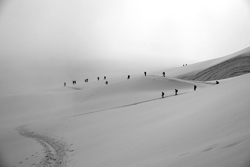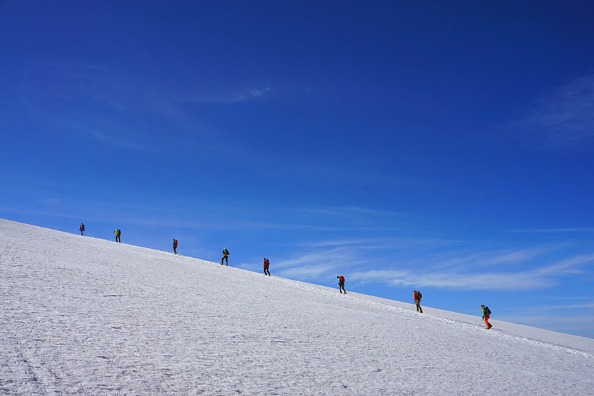 Another team climbing up towards Castor. |