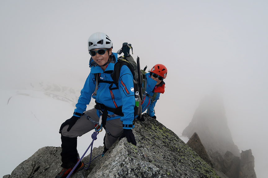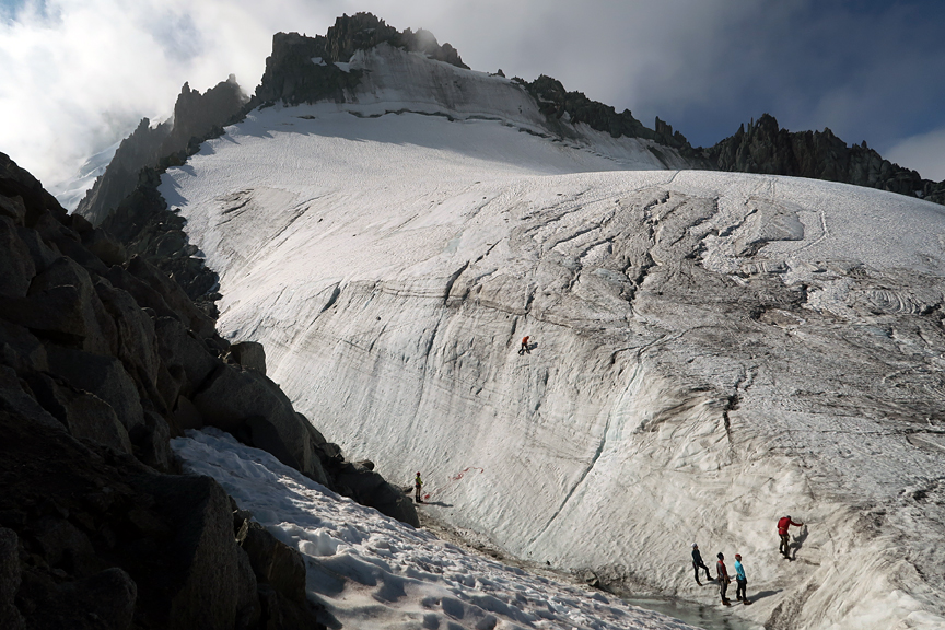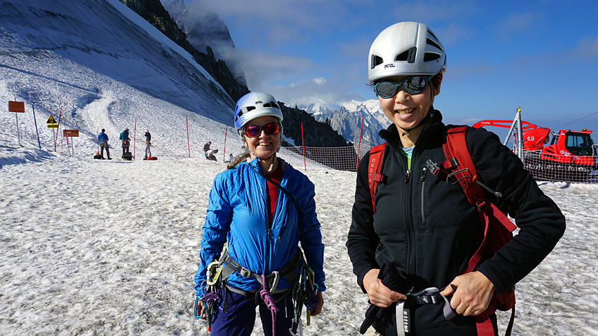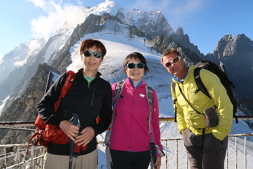 Day 1, from left to right, Yichie, Yibing, and Mark. We headed to the Grands Montets for some initial training for Yichie with Kathy, while Yibing and Mark did a nearby ridge climb. |